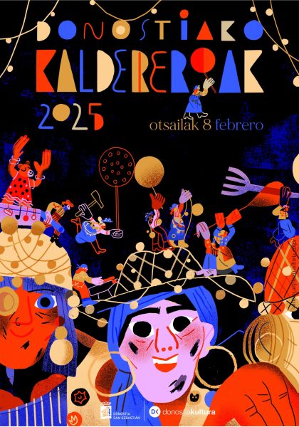 Ainara Azpiazu Aduriz «Axpi» (Hernani), ilustradora profesional, ha sido la encargada de diseñar la imagen de los caldereros y caldereras de este año 2025. En este cartel, Ainara ha querido hacer visible el sonido metálico de los caldereros/as, traer el ruido a nivel visual, además del ambiente festivo y la alegría reinante.